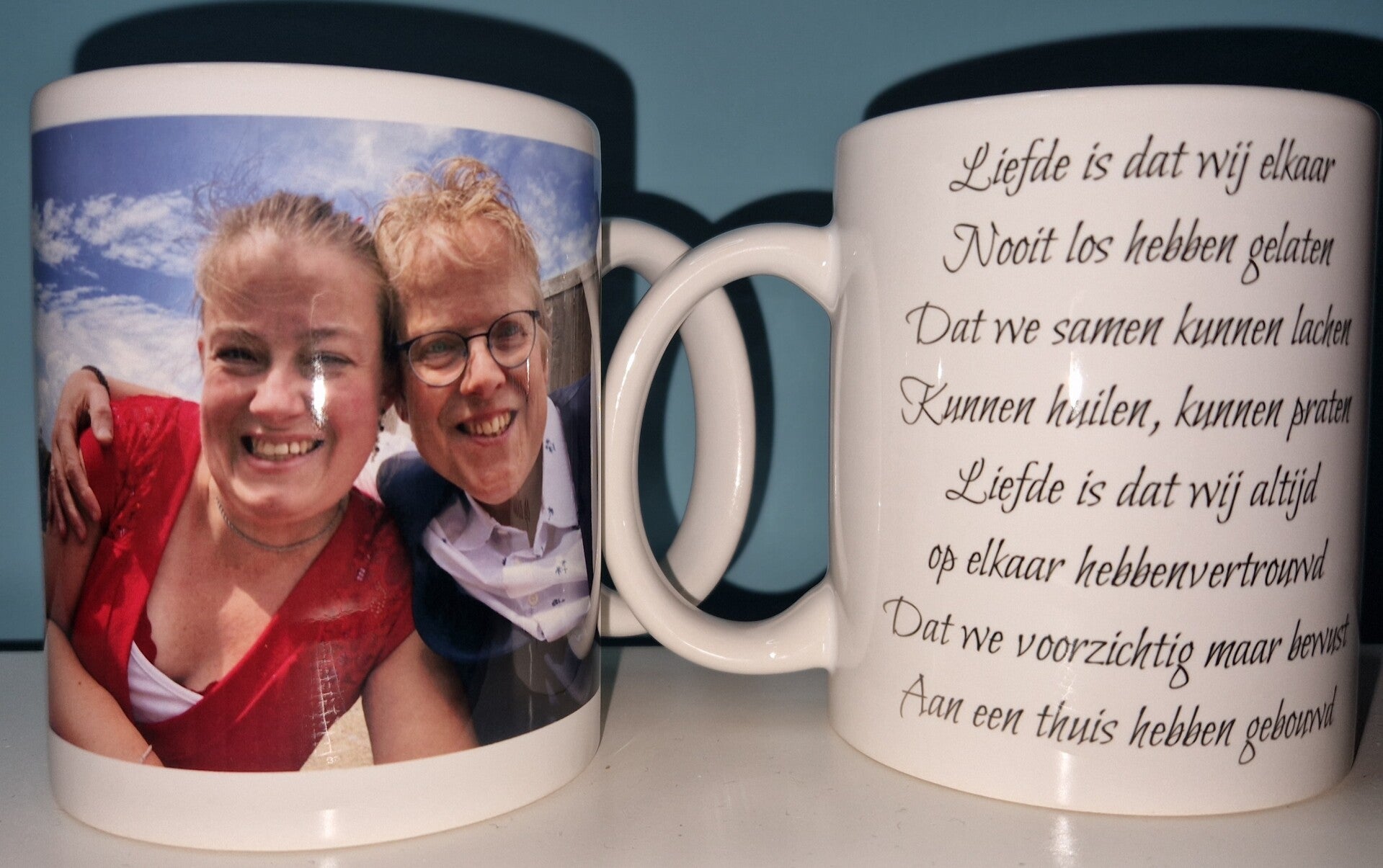 Deze gepersonaliseerde mok is te bestellen met iedere gewenste afbeelding/foto en/of tekst. Vul in het opmerkingenveld bij het afrekenen je wensen in en stuur eventuele afbeeldingen per mail naar info@lettersbynic.nl