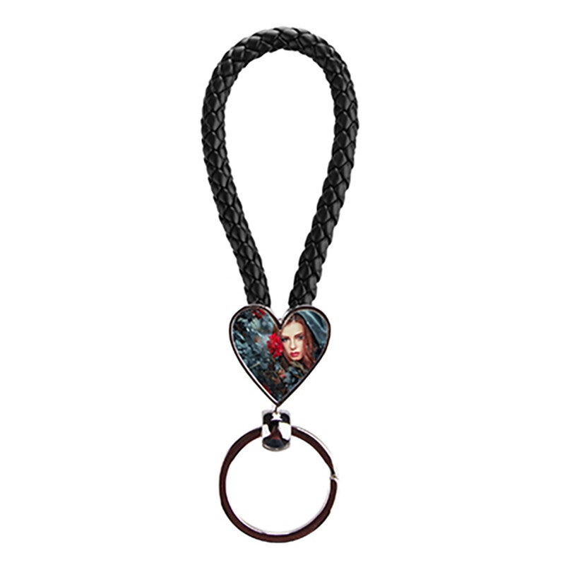 Sleutelhanger met koord van kunstleer met bedrukbaar hartoppervlak voor sublimatie of folie. Bedrukbare plaatje is ca. 2,2 x 2 cm. Het hart kan aan 2 kanten bedrukt worden! Totale sleutelhanger 3,3 x 13 cm. De sleutelhanger is verpakt in een cadeauverpakking/doosje.