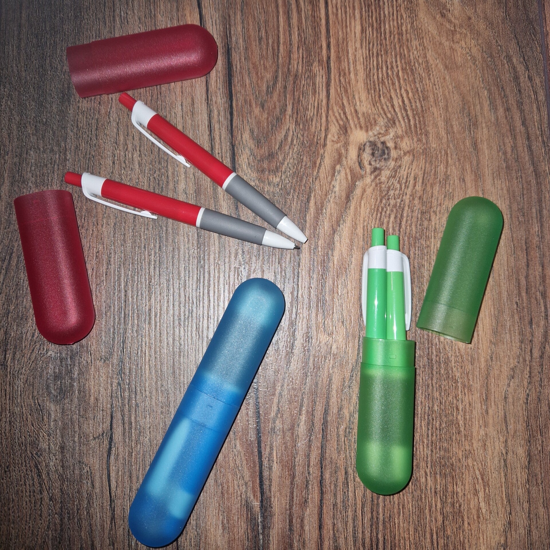 Leuk setje in hoesje met een balpen en een vulpotlood inclusief kunststof etui. Zowel de etui als de pen en het potlood zijn te bedrukken met vinyl.